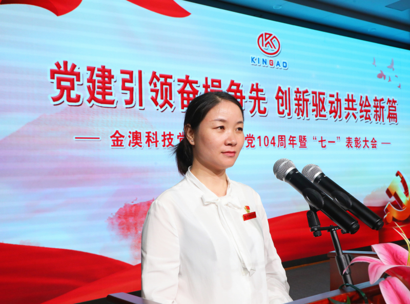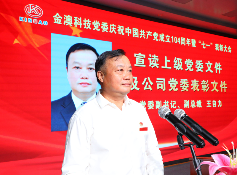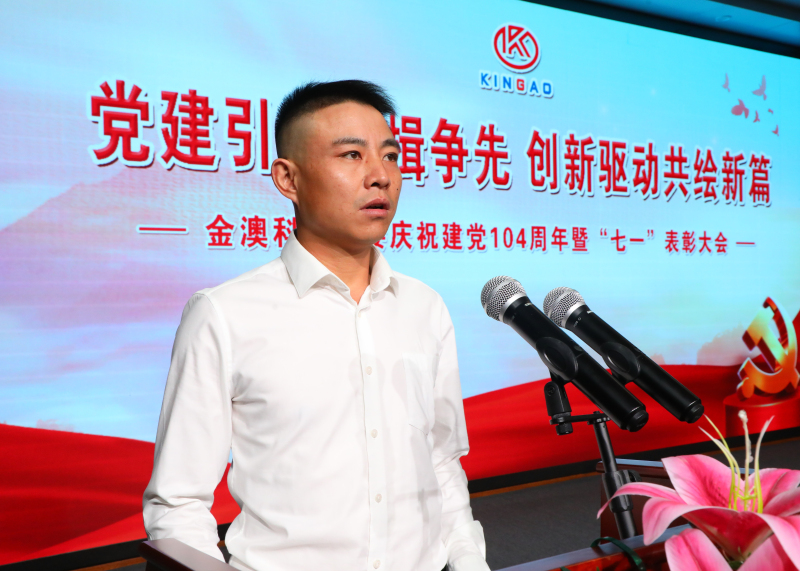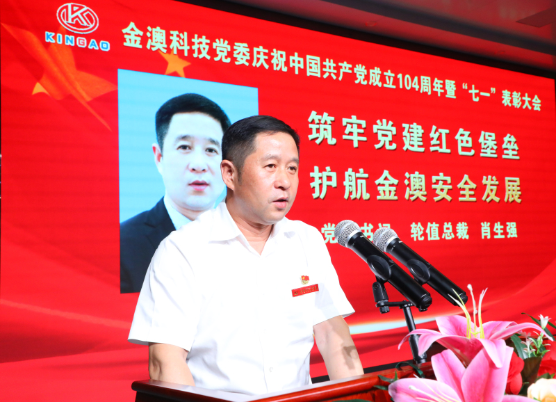 6月30日晚,金澳集團(tuán)在多功能廳隆重召開慶祝中國(guó)共產(chǎn)黨成立104周年暨“七一”表彰大會(huì)。金澳科技黨委書記、輪值總裁肖生強(qiáng),黨委副書記、副總裁王自力等黨委班子成員、各黨支部黨員、入黨積極分子參加。